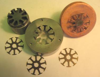 Электродами-инструментами, изготовленными с использованием станка СКФ-50, на станках СНЭ-20МК, СКП-50М, СКП-50М производится формообразование рабочих поверхностей обеих вставок. При осуществлении процесса размерной электрохимической обработки, плоскость разъема электрода-инструмента копируется на плоскости разъема анода, чем и достигается полное совмещение плоскостей разъема формы. На рис. 7, 8, 9 приведены вставки в литьевые формы, изготовленные на станках СКФ-50, СНЭ-20МК, СКП-20М, СКП-50М по вышеизложенной технологии. ![]() ![]() ![]() |
